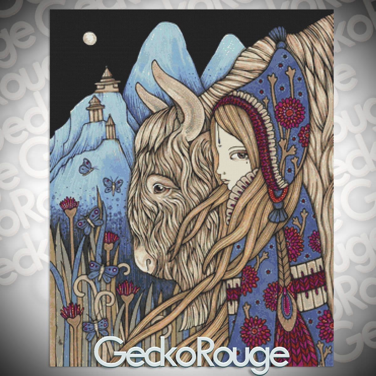 Taurus is a licensed counted cross stitch kit, featuring the stunning artwork by Anita Inverarity. This beauty has been carefully crafted by our talented team, straight from the heart of Gecko HQ nestled in the leafy nooks of Surrey, England.